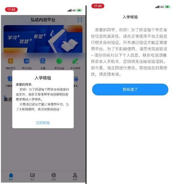 學(xué)生登錄客戶端以后,系統(tǒng)會(huì)彈出身份核驗(yàn)和信息確認(rèn)的頁面,學(xué)生須認(rèn)真核對(duì)個(gè)人基本信息(如姓名、性別、身份證號(hào)、民族等)。如果沒有錯(cuò)誤,點(diǎn)擊“確認(rèn)無誤”按鈕;如果有錯(cuò)誤,點(diǎn)擊“反饋錯(cuò)誤”,等待學(xué)院處理以后,可正常進(jìn)入系統(tǒng)。特別提示:基本信息錯(cuò)誤需要變更的,需聯(lián)系校外教學(xué)點(diǎn)負(fù)責(zé)老師,準(zhǔn)備信息變更所需要的材料。